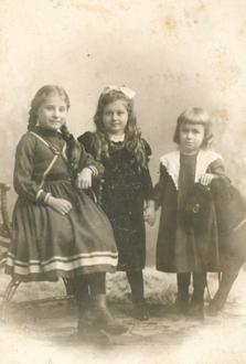 [Elisabeth (mitte) mit Schwester Mariechen (links) und Bruder Fritz (rechts) um 1903]