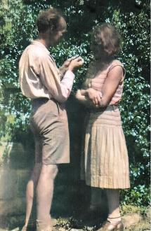 (Die Künstlerin und ihr Ehemann im Garten / restauriertes Foto)