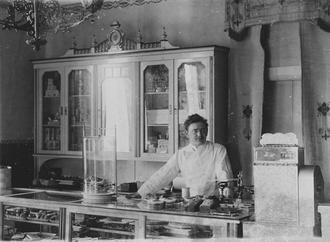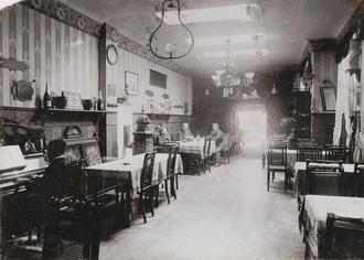 Das rechte Schaufenster ist als solches nie genutzt worden. Dahinter lag ein Raum, der von der Konditorei abgetrennt war und im Barther Volksmund "Kutscherstuuw" hieß. Bekannt war die Konditorei Bielenberg insbesondere durch ihren Baumkuchen, der auch das Zunftzeichen am Hause zierte.