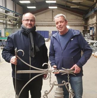 Geschäftsführer Peter Thum von der Firma TAB Maschinen- und Stahlbau GmbH und Geschäftsführer Haiko Bentzien von der Firma Karosseriebau Borowski haben uns schnell und unbürokratisch geholfen, das alte Zunftzeichen der Konditorei Bielenberg wieder in altem Glanz erstrahlen zu lassen. Dafür unseren herzlichsten Dank.