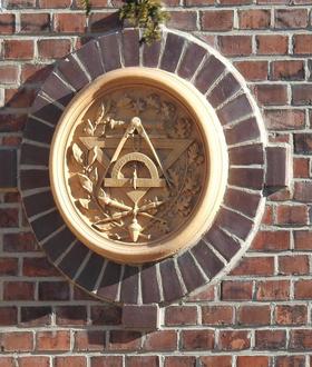 Gab es in Barth Freimaurer? Ja, die gab es. Und zwar sind für 1910 bis 1935 zwei Freimaurerlogen nachweisbar: Ab 1910 die Johannisloge "Zum Anker", und ab 1922 die zweite Loge, die Druidenloge "Barthika zur Wahrheit". Es gibt an zwei Gebäuden Symbole, die einen Bezug auf weitere Logen vermuten lassen könnten. So befindet sich auf dem Haus Markt 1 ein Dachreiter mit dem eindeutigen Symbol der Freimaurerloge "Zu den drei Rosenknospen". Auch wenn die Symbolik auf dem Haus Markt 1 unzweifelhaft auf Freimaurer hinweist, ist zu fragen, warum ist der Dachreiter hier angebracht worden? Denn eine solche Loge hatte es in Barth ja nicht gegeben. Auch bei der Villa in der Hafenstraße 22 mit seinen zahlreichen Schmuckelementen an Süd- und Westfassade tut sich die Frage nach dem Freimaurertum auf. Auf der westlichen Seite hat der Architekt bzw. der Baumeister ein schön gestaltetes Bijou geschaffen. Doch ob es nur ein Innungszeichen der Maurer bzw. Architekten ist, oder ob der Erbauer der Villa, Albert Wendt, lediglich seine Verbundenheit mit den Idealen der Freimaurer bekunden wollte, kann nicht gesagt werden. Denn als er 1903 verstarb, gab es in Barth offiziell noch keine Loge. Bei dem neuen Eigentümer der Villa ab 1910, Maurermeister Max Teetz, könnte man es sich sicherlich einfacher machen. Der war nämlich Mitglied der Johannisloge "Zum Anker". Hat also Teetz dieses Bijou erst nachträglich an der Fassade anbringen lassen? Das Abzeichen der Loge "Zum Anker" sah allerdings etwas anders aus. Es stellte einen achtstrahligen Stern dar mit einem Anker im Schild, von Winkel und Zirkel eingeschlossen.