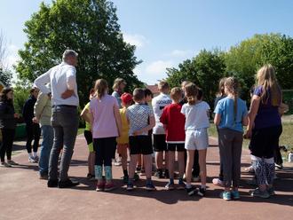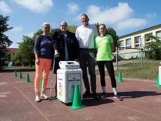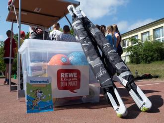 Neben dem einzelnen Aktionstag steht auch der langfristige Nutzen im Fokus. Um den sportlichen Ehrgeiz über diesen Tag hinaus im Schulalltag aufrechtzuerhalten, erhielt die Zentrale Grundschule "Friedrich Adolf Nobert" von REWE Markt Regina Karge oHG das "AktioKit Bewegung" überreicht - eine Sportmaterialkiste zur nachhaltigen Gestaltung der Pausen.