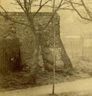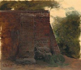 (Louis Douzette: Mauer des Fräuleinstifts in Barth; sign. unten links, undat, 28,8 x 23,9 cm Öl auf Karton)