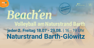 Barth – Sommer, Sonne, Sand unter den Füßen und das ganz ohne Anmeldung: Vom 18. Juli bis 29. August wird der Naturstrand im Barther Ortsteil Glöwitz zur Bühne für lockeres Beachvolleyball und echtes Urlaubsfeeling. Alle zwei Wochen freitags heißt es hier: Beach‘en! Ein sportlich-entspannter Nachmittag für Einheimische, Familien, Jugendliche und Urlaubsgäste gleichermaßen.