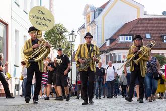 Auch die Kultur kommt nicht zu kurz! Bewundern Sie die Künstler und Artisten der Rostocker Küstenkultur mitten in der Straße und am Zellerplatz – ein Anblick, der nicht verpasst werden darf!