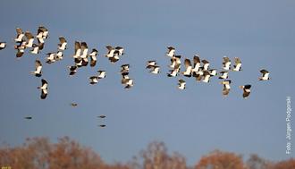 Ein Kiebitz kommt selten allein: In der vergangenen Brutzeit gab es bei den Kiebitzen so einiges zu beobachten, wie etwa die spektakulären Balzflüge der Männchen über den Brutrevieren. Im Spätsommer und Herbst können wir Kiebitzschwärme in der Boddenlandschaft, auf Stoppelfeldern und Wiesen entdecken, denn sie unterbrechen ihre Reise unterwegs und ruhen sich für den Weiterzug aus. Winterquartiere der Kiebitze sind der milde Westen und Südwesten Europas.