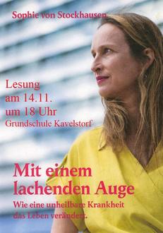 Wir laden alle interessierten Personen zu einer öffentlichen Lesung mit der Autorin Sophie Stockhausen in den Kavelstorfer Kreuzweg ein. Frau Stockhausen leidet an einer degenerativen Augenerkrankung und schildert ihre Erlebnisse in dem lesenswerten Buch „Mit einem lachenden Auge: Wie eine unheilbare Krankheit das Leben verändert“. Wir sind gespannt darauf, von der Autorin in die Welt der schwer erkrankten Menschen mitgenommen zu werden und mit ihr ins Gespräch zu kommen. Der Zutritt zur Veranstaltung ist kostenfrei und eine vorherige Anmeldung ist nicht erforderlich.