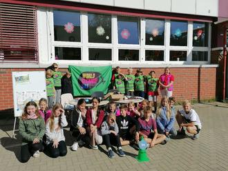 Unsere Schule hat innerhalb einer Stunde über 130 Kilogramm Müll gesammelt. Außerdem hat sich unsere Klasse eine Reportage über eine Insel mit viel Müll angesehen. Einige andere Schulklassen konnten aus ihrem gesammelten Müll etwas Kreatives basteln.