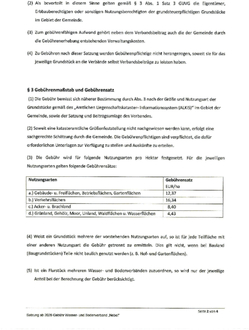 (1) Die Gebühr bemisst sich näherer Bestimmung durch Abs. 3 nach der Größe und Nutzungsart der Grundstücke gemäß des „Amtlichen Liegenschaftskataster- Informationssystem (ALKIS)" im Gebiet der Gemeinde, sowie der Satzung und Beitragsumlage des Verbandes.