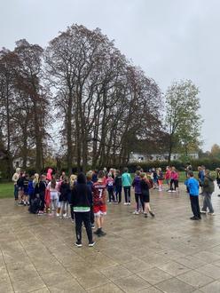 Gelegentlicher Nieselregen begleitete uns auf der Laufstrecke im Park, doch die Stimmung blieb erstaunlich gut. Schon beim Aufwärmen war zu spüren, dass niemand sich von den kleinen Pfützen bremsen lassen wollte. Es starteten die verschiedenen Jahrgänge in den Sportstunden nacheinander in ihre Runden, die – je nach Altersgruppe – zwischen einer und fünf Runden umfassten.