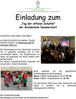 wir laden Sie herzlich zu unserem „Tag der offenen Schultür“ am Donnerstag, den 27. November 2025, ein.