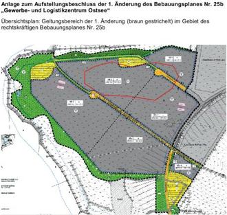 Die Gemeindevertretung der Gemeinde Dummerstorf hat in Ihrer Sitzung am 07.10.2025 die Aufstellung der 1. Änderung des Bebauungsplanes Nr. 25b „Gewerbe- und Logistikzentrum Ostsee 3.0“ beschlossen.