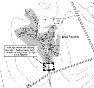 Der Satzungsbeschluss über die 1. Ergänzung der Innenbereichssatzung für die Ortslage Groß Potrems wird hiermit gemäß § 34 Abs. 6 Baugesetzbuch (BauGB) i.V.m. § 10 Abs. 3 BauGB in der Fassung der Bekanntmachung vom 03. November 2017 (BGBl. I S. 3634), zuletzt geändert durch Artikel 2 des Gesetzes vom 26. April 2022 (BGBl. I S. 674), bekannt gemacht.