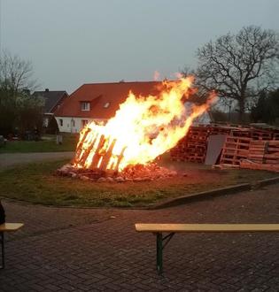Osterfeuer gehören mittlerweile zur festen Tradition nicht nur in unserer Gemeinde. Land auf und Land ab sah man vom Gründonnerstag bis zum Ostermontag allerorten Osterfeuer erstrahlen. Das Osterfeuer ist laut Google ein alter Brauch. Früher als Freudenfeuer zur Segnung des Feuers und dem Entzünden der Osterkerzen dienend. Damit sollen die Wintergeister und alles Böse vertrieben werden. Heutzutage sind die Osterfeuer eher eine gute Gelegenheit sich nach den langen, einsamen Wintertagen in der Gemeinschaft zusammen zu finden, sich auszutauschen, gemeinsam etwas zu essen und zu trinken. Unseren langgezogenen Ortsteil zeichnet aus, dass wir über zwei Freiwillige Feuerwehren verfügen.