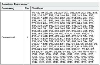 Dem Bodenordnungsverfahren „Dummerstorf“ unterliegen weiterhin folgende Flurstücke: