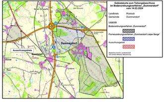 Das Bodenordnungsverfahren „Dummerstorf“ wird in das Bodenordnungsverfahren „Dummerstorf“ und in das Flurneuordnungsverfahren (FNV) „Dummerstorf-Lieper Berge“ geteilt.