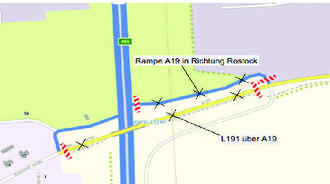 In diesem Zeitraum wird die Landesstraße 191 inkl. der Auf- und Abfahrtrampe Richtung Rostock voll gesperrt sein.