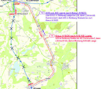 Die Umleitungen erfolgen über die A 19/A20 und der L191.