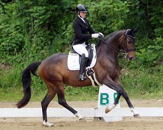 Die M-Dressur Aufgabe M3 hat Marlis Möve-Jarren aus Ganschow mit der 8-jährigen Trakehner Stute Val d’Isere gewonnen.