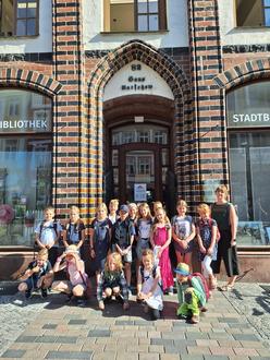 Am Mittwoch, den 26. Juni 2024, waren wir in der Rostocker Stadtbibliothek, weil wir das Büchertürme-Projekt des Monats März gewonnen haben. Am Anfang hat uns eine nette Frau begrüßt, sie hieß Frau Bonke und war eine Mitarbeiterin der Stadtbibliothek. Sven Gerhardt hat uns sein Buch „Minna Melone-Wundersame Geschichten aus dem Wahrlichwald“ vorgestellt. Am Ende haben wir Süßigkeiten bekommen, weil wir alle so gut mitgemacht haben. Im Anschluss sind wir in den Park vor dem Universitätshauptgebäude gegangen und durften dort unser restliches Frühstück aufessen. Nach einigen Spielen haben wir uns mit einem leckeren Eis abgekühlt. Im Park haben wir einen netten älteren Mann getroffen, der uns ganz alte Geldscheine aus anderen Ländern gezeigt hat. Wir hatten ganz viel Spaß an dem Tag.