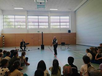Das und vieles mehr durften die Kinder der Grundschule Dummerstorf am vergangenen Dienstag herausfinden. Am 18.06. traten die „Musenkinder“ mit ihrem musikalischen Märchen auf und begeisterten die Schüler mit einer bildhaften und spannungsreichen Erzählweise, die die Kinder auf unterhaltsame Weise an die Mythen der Antike heranführten. Mit eigens für das Stück komponierter Musik nahmen die Darsteller die Kinder mit in diese wundersame Welt und zogen sie durch mystische Saxofon-, Gitarren- und Flötenklänge in den Bann der griechischen Mythologie.