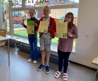 Geehrt wurden natürlich alle Beteiligten mit einer Urkunde. Die Jahrgangssieger erhielten zusätzlich den begehrten Klassen-Wanderpokal und einen Gutschein über 10€, den sie bei der Thalia-Buchhandlung einlösen können.