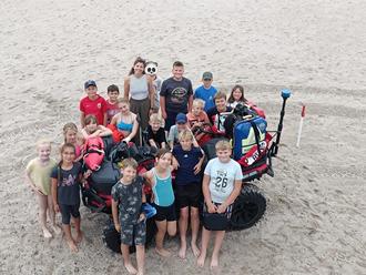 Wir durften das Klassenzimmer gegen den Ostseestrand tauschen, denn wir haben einen Strandschultag in Warnemünde gewonnen. Vorausgegangen war ein Bewerbungsverfahren, bei dem sich die Klasse im Kunstunterricht intensiv mit der Frage „Wie sieht unser Strand der Zukunft aus?“ beschäftigte. Die Kinder setzten sich kreativ mit dem Klimawandel und seinen Auswirkungen auf die Ostsee auseinander und gestalteten Plakate. An dem Freitag ging es dann endlich los. Gemeinsam fuhren wir mit der Bahn nach Warnemünde, wo ein erlebnisreicher Tag auf uns wartete. Die Kinder durchliefen 4 Stationen. Bei den Rettungsschwimmern der DRK Wasserwacht schauten wir von oben vom Hauptwachturm aus auf den Strand und erhielten spannende Einblicke wie für Sicherheit am Strand gesorgt wird. Auch die Sporteinheit am active beach durfte nicht fehlen. Handball, Fußball und Ball über die Schnur im Sand machte allen großen Spaß. Bei der Strandrallye lernten die Kinder viel Neues über den Küstenschutz sowie dessen nachhaltige Nutzung und bauten noch gemeinsam Sandburgen. Zum Abschluss durften wir eine Surf-Schnupperstunde bei Supreme Surf absolvieren. Mit Neoprenanzug und Board ging es ins Wasser. Einige Kinder standen am Ende sogar schon auf dem Brett.