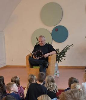 Autor Ingo Fischer las tierische Geschichten zum Mitmachen in der Grundschule.