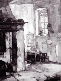 Ein Gemälde von Zenker zeigt die Küche im Flur des Hospitals um 1920