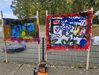Trotz regnerischer Ferienwoche wurde der Jugendclub gut besucht und es fanden sich genug Kinder, um sich am Dienstag, den 21.10.25, kreativ mit dem Thema Graffiti auseinanderzusetzen. Fünf Kinder erprobten erste Striche mit den Sprühflaschen, bevor sie sich an ein großes Laken wagten und es mit viel Fantasie und Kreativität besprühten. Vielen Dank hier noch einmal für die vielen gespendeten Laken die uns erreicht haben. Die Kinder waren begeistert dabei und sprühten kleine Kunstwerke. Natürlich durfte jedes Kind sein Kunstwerk auch mit nach Hause nehmen. So waren am Ende alle glücklich und die fertiggestellten Kunstwerke sprechen für sich.
