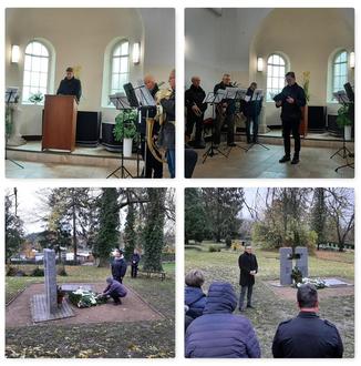 Er war besonders windig, besonders naß und besonders ungemütlich, dieser Volkstrauertag 2023. Dennoch hatten sich zahlreiche Bürgerinnen und Bürger an diesem Sonntag auf den Weg zum Friedhof gemacht, um den Opfern von Krieg, Terror, Gewalt, Rassismus und Antisemitismus zu gedenken. Der Posaunenchor der evangelischen Kirche umrahmte das Programm musikalisch passend. Die Totenehrung übernahm Kirchengemeinderat Matthias Pätzold, die Rede zum Volkstrauertag hielt Stadtvertretervorsteher Stefan Philipp. Einen Auszug daraus möchten wir an dieser Stelle zitieren.