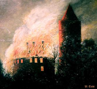 „Am 18. Dezember 1919 ereilte die alte Burg zu Stargard ein schwerer Schicksalsschlag. Von ruchloser Hand ward des Abends gegen 6 Uhr - in der Amtsstube des Amtes Stargard ein Feuer gelegt, welches im Krummen Hause binnen kurzer Zeit so gewaltig wütete, dass jeder Löschversuch zu einem sinnlosen Unterfangen wurde.“