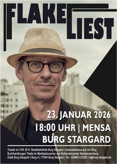 Christian Lorenz, besser bekannt als Flake, kommt nach Burg Stargard. Am 23.01.2026 liest der Keyboarder der Erfolgsband Rammstein um 18 Uhr in der Neuen Mensa auf dem Schulgelände am Klüschenberg. Seit knapp 30 Jahren begeistert der Berliner mit Rammstein Fans auf allen Kontinenten und sorgt regelmäßig für ausverkaufte Arenen. Mit über 20 Millionen verkauften Alben ist Rammstein die weltweit erfolgreichste deutschsprachige Band überhaupt. Tickets für 28,00 € erhalten Sie in der Stadtbibliothek Burg Stargard, dem Amtsreitergebäude auf der Burg sowie in den Thalia-Filialen im Marktplatz- und Bethaniencenter Neubrandenburg. Da es sich um eine Autorenlesung von Flake handelt, möchten wir Sie vorab darüber informieren, dass an diesem Abend ausschließlich mitgebrachte oder bei der Veranstaltung erworbene Bücher des Künstlers signiert werden. Videoaufnahmen während der Lesung sind aus urheberrechtlichen Gründen nicht gestattet.