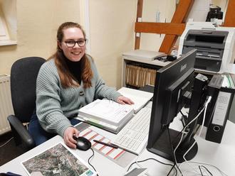 Auszubildende Josefine Schröder an ihrem Arbeitsplatz im Rathaus
