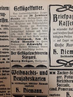 Alte Stargarder Zeitungen aus dem Jahr 1915.
