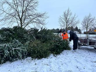 Aufgestapelte Tannenbäume für das diesjährige Tannenbaumverbrennen in Rowa.