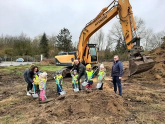 Am 22.02.2024 konnten wir nun endlich zusammen mit einer Gruppe der Kita „Märchenwald“ den ersten Spatenstich für den Neubau des Kindergartens am Papiermühlenweg setzen. Wenn die Bauarbeiten nun planmäßig vorangetrieben werden können, ist mit der Fertigstellung in der zweiten Jahreshälfte 2025 zu rechnen.
