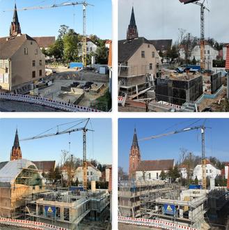 Bei den anderen beiden Großbaustellen in unserer Stadt kann man beinahe täglich Veränderungen beobachten. Während wir uns beim Kindergarten im Papiermühlenweg so langsam auf der Zielgeraden befinden und im Wesentlichen noch der Innenausbau sowie die Außenanlagen herzustellen sind, befinden wir uns beim Bürgerhaus am Marktplatz noch in der Phase des Rohbaus. Ziel ist es, die Arbeiten am Kindergarten im Juli abschließen zu können, wohingegen mit der Fertigstellung des Bürgerhauses voraussichtlich noch bis Ende 2026 gewartet werden muss.