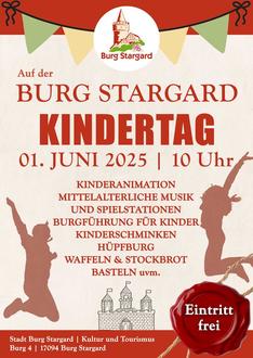 Am 01. Juni feiern wir den Kindertag auf der Burg Stargard! Freut euch auf frische Waffeln, eine Hüpfburg, Kinderschminken und vieles mehr. Ab 14 Uhr gibt es Riesenseifenblasen zum Selbstmachen und Platzenlassen. Außerdem startet um 14 Uhr eine Burgführung speziell für Kinder. Um 15 Uhr lädt Mary Lou zur Kinderdisco zum Mittanzen, einer Zaubershow mitsamt einer Schatzsuche ein.