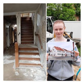 Blick ins unsanierte Haus in der Marktstraße 7 und wie es von außen einmal aussehen soll.