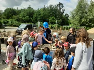 Bei der Grundsteinlegung der neuen Kita durften die Kinder selbst zu Maurern werden.