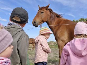 Anfang Mai hieß es für die Kinder unserer AWO Kita „Ballwitzer Landknirpse“: Rucksäcke packen und raus in die Natur! Ziel des kleinen Abenteuers war Holldorf – genauer gesagt ein idyllischer Reiterhof, den die Kinder mit viel Vorfreude ansteuerten. Schon der Weg dorthin war aufregend: Gemeinsam wanderten die Landknirpse durch die Landschaft und tauschten dabei lebhaft Vermutungen aus, was sie wohl alles erwarten würde. Am Reiterhof angekommen, standen die Pferde natürlich im Mittelpunkt des Interesses. Mit großen Augen beobachteten die Kinder die Tiere beim Grasen und in ihren Boxen. Mutige kleine Hände durften auch mal vorsichtig streicheln – ein ganz besonderes Erlebnis! Da die Aufregung groß war und die Pferde nicht überfordert werden sollten, wurde das Striegeln kurzerhand unter den Kindern ausprobiert – mit viel Lachen und gegenseitiger Fürsorge. Zum Abschluss des gelungenen Ausflugs wartete auf alle eine leckere Bratwurst vom Grill. Danach wurde der Spielplatz in Holldorf mit Begeisterung erkundet und regelrecht „in Beschlag genommen“, bevor es dann wieder zurück in unsere Kita nach Ballwitz ging, erschöpft, aber voller neuer Eindrücke.