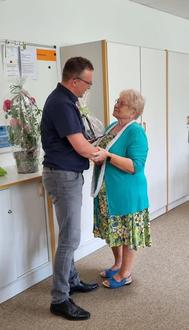 Nach 48 Jahren im Schuldienst wurde Lehrerin Christine Schlauch am letzten Schultag offiziell in den Ruhestand verabschiedet. Geschichte, Sozialkunde, Philosophie und Russisch lernten unzählige Schülerinnen und Schüler an der Regionalen Schule in den letzten Jahrzehnten bei ihr. Sogar Bürgermeister Tilo Lorenz drückte bei ihr schon die Schulbank. Nicht nur er wird Christine Schlauch als Lehrerin mit Leib und Seele, die mit einem offenen Ohr, viel Geduld und Herzlichkeit für ihre Schülerinnen und Schüler da war, in Erinnerung behalten. Eigentlich hätte vor ein paar Jahren schon Schluss mit Klausuren korrigieren und Lehrstoff vermitteln sein können, doch die Lust am Lehren und der Lehrermangel ließen Christine Schlauch noch ein paar Jahre länger im Schuldienst arbeiten. Mit 71 Jahren wird sie sich jetzt mehr um die Enkel kümmern – auch mit Nachhilfe, wenn es nötig ist. Wir sagen vielen Dank für ihr Engagement und ihre Arbeit in der Schule und wünschen Christine Schlauch alles Gute, Gesundheit und Freude im wohlverdienten Ruhestand.