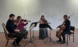 Auch für das leibliche Wohl war gesorgt. Das Konzert mit dem „Vier Tore Quartett“ war dann der Höhepunkt der 27. Musikalischen Radtour. Darius Kaunas, Violine; Friederike Jahn, Violine; Christine von der Groeben, Viola und Mathias Beyer, Violincello, begeisterten die Konzertbesucher in der Feldsteinscheune mit Kompositionen u.a. von Felix Mendelssohn Bartholdy und seiner Schwester Fanny. Darius Kaunas, Friederike Jahn und Christine von der Groeben kommentierten die Musikstücke mit interessanten Hintergrundinformationen. Das Publikum, Teilnehmer der Radtour, Einwohner aus Cammin, Godenswege, Riepke und aus der Bungalowsiedlung, dankte den Künstlern mit langanhaltendem Applaus.