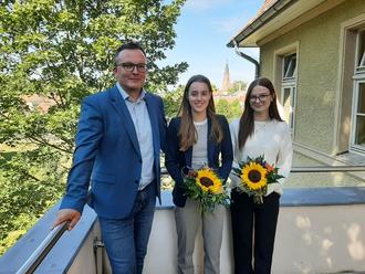 Seit ein paar Wochen bereichern Hanna Niemann und Jette Gonschorek nun schon das Auszubildendenteam der Verwaltung in Burg Stargard. Neben unseren Auszubildenden Josefine Schröder im 3. Lehrjahr und Joleen Vogt im 2. Lehrjahr stehen den beiden Neu-Azubinen die Kolleginnen und Kollegen aus den Fachämtern mit Rat und Tat zur Seite. Bürgermeister Tilo Lorenz begrüßte Hanna und Jette an ihrem ersten „Arbeitstag“ zur Verwaltungsfachangestellten am 02. September im Rathaus. „Wir haben jetzt insgesamt vier Auszubildende. Das ist für eine kleine Verwaltung wie Burg Stargard nicht selbstverständlich, aber wichtig und richtig“, so Tilo Lorenz. Der Weg zu ihrem Ausbildungsplatz ist für die 16-jährige Hanna Niemann nicht weit. Die gebürtige Burg Stargarderin legt in diesem Jahr die mittlere Reife an der Regionalen Schule ab und wechselt nun quasi von der einen Seite des Mühlenteiches zur anderen. Eine Freundin hat begeistert von einem Praktikum in der Verwaltung in Burg Stargard gesprochen. „Ich mag meine Heimatstadt sehr, fühle mich hier wohl und möchte gern für die Stadt und ihre Bürgerinnen und Bürger etwas tun“, sagt Hanna. „Im Vergleich zu anderen Jahren, haben wir in diesem Jahr sehr viele Bewerber für einen Ausbildungsplatz gehabt. Das spricht für uns als Ausbildungsbetrieb“, freut sich Tilo Lorenz. „Mit Blick auf absehbare Renteneintritte einiger Kolleginnen bei uns in der Verwaltung muss es uns gelingen, aus jungen Menschen von heute Fachkräfte von morgen mit beruflichen Perspektiven zu machen.“ Das ist vielleicht auch eine kleine Motivation für die 18-jährige Jette. Die gebürtige Woggersinerin legte ihre mittlere Reife am Sportgymnasium Neubrandenburg ab. Lange Zeit trainierte sie hier intensiv bei den Triathleten. Das Training führte sie auch immer wieder durch Burg Stargard. „Eine sehr schöne, kleine Stadt“, wie Jette sagt. Nach einem Praktikum bei der Polizei entschied sie sich für eine Ausbildung zur Verwaltungsfachangestellten. In ihrer ersten Woche konnte sich Jette beim Einwohnermeldeamt einige Eindrücke verschaffen, während Hanna in der Poststelle erste Erfahrungen sammeln konnte. Wenn sie nicht im Rathaus im praktischen Verwaltungsalltag zwischen Zuwendungsbescheiden, Haushaltsplan, Baubesprechungen und Gesetzestexten eingesetzt sind, fahren die beiden nach Greifswald zur Berufsschule bzw. nach Waren zu den so genannten Dienstbegleitenden Unterweisungen (DBU). Kosten für Fahrten und Internat übernimmt die Stadt.
