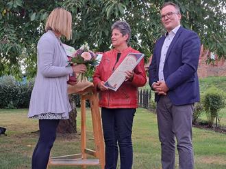 Katja Sievert, Martina Behrendt und Tilo Lorenz (v.l.n.r.) bei der Übergabe der Urkunde