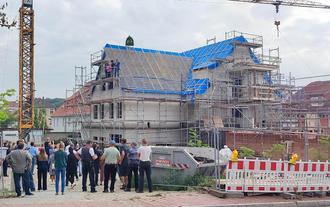 Beim Richtfest des neuen Bürgerhauses wurde dem Dachstuhl die Krone aufgesetzt.