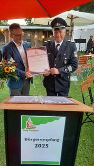 Frank Dielenberg für 40 Jahre aktiven Dienst in der Freiwilligen Feuerwehr Burg Stargard.