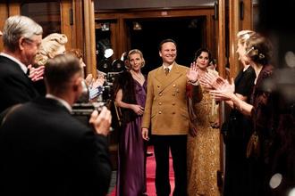 Magda Goebbels (Franziska Weisz), Joseph Goebbels (Robert Stadlober) und Lida Baarova (Katia Fellin) bei einer Filmpremiere © Zeitsprung, SWR, Wild Bunch,