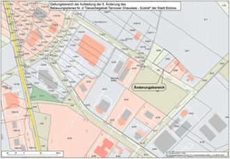 Die Stadtvertretung Bützow hat in ihrer Sitzung am 09.09.2024 im Beschluss Nr. BÜZ/0034/2024 die Einleitung des Planungsverfahrens zur 5. Änderung des B-Planes Nr. 4 "Gewerbegebiet Tarnower Chaussee - Südost" gemäß § 2 Baugesetzbuch (BauGB) beschlossen.